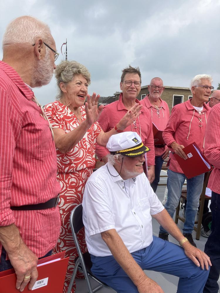 Op het dek van de Simmerwille, te midden van de vele watersporters, traden wij op voor Auke en Emma ter gelegenheid van hun 60 jarig huwelijksfeest.